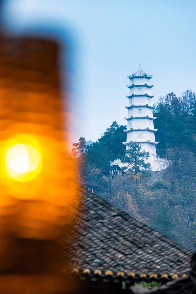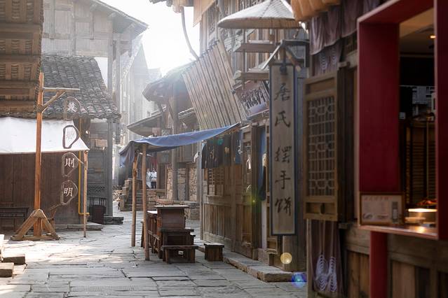 冬日里温暖的阳光,撒在古色古香的临江食街,光影斑驳间的丁达尔光线,是定格了时光的模样。