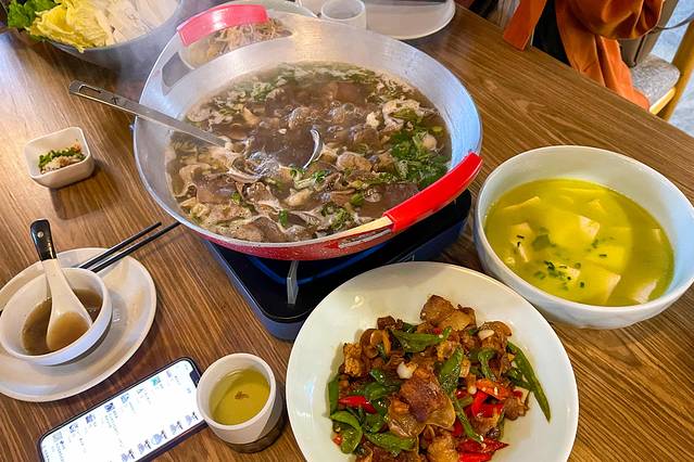 刨锅汤是贵州历史悠久的一种特色菜,口味香辣,一般都有粉蒸肉、回锅肉、炒猪肝、酸菜滑肉面块和一道地地道道的“刨锅汤”。