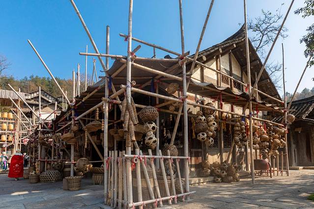 古老的非遗手作店散布在手工作坊区,非遗匠人坐在阳光里一如既往地忙碌着,而丰富多彩的手工体验项目,让非遗项目不再走马观花,更能沉浸式地体验传统技艺的魅力,感受乌江寨里的慢生活。