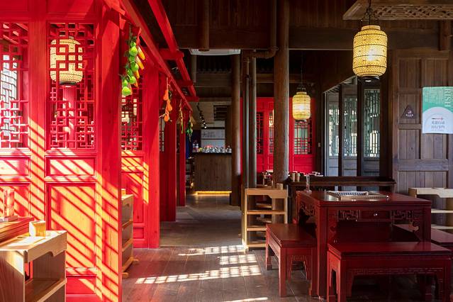 在黔书院的回廊里凭栏远眺,温柔夜色入怀,在温馨舒适的客房里枕着书香入眠,美景相陪酣然入睡。