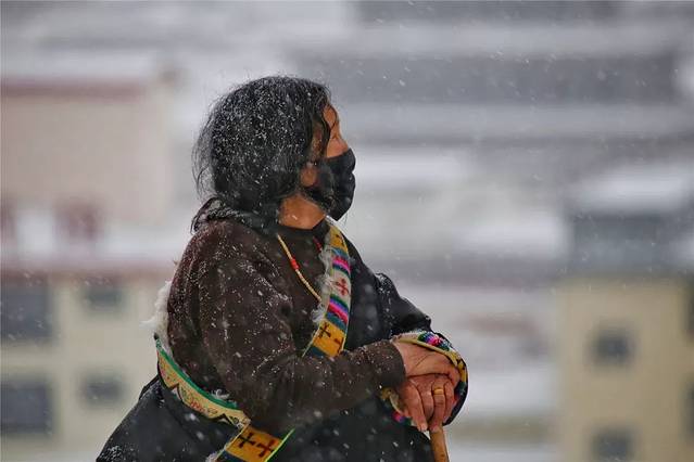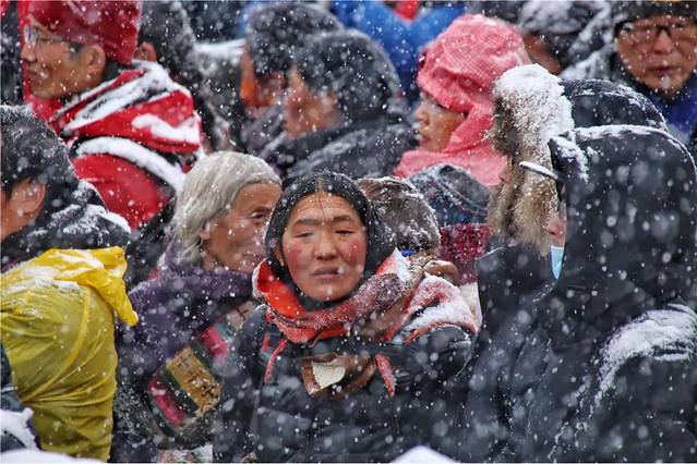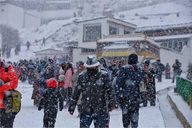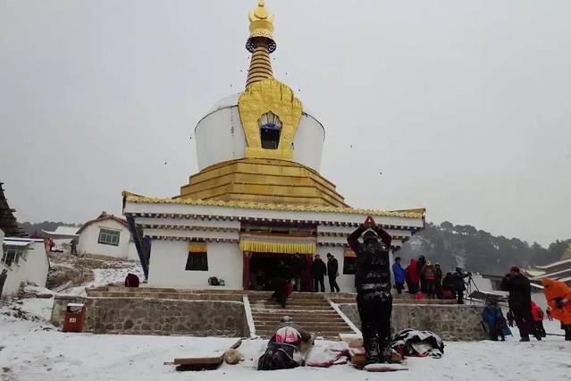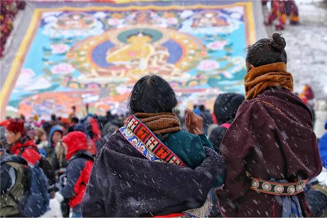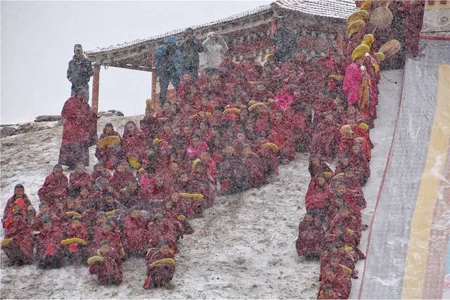△早晨我们抵达时,已经有信徒在开始扫晒佛台的积雪,所以晒佛台上看不到积雪了