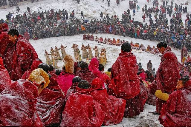 赛赤寺(郎木寺甘肃寺院):正月十三:晒佛;正月十四:跳虔(法舞);