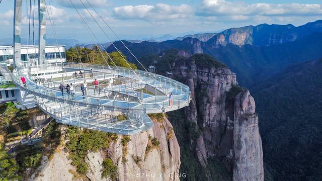 神仙居上,还有处超网红的打卡点,南天顶,一座壮观的网红玻璃悬索桥,其实在坐索道时就已看到,是从南门上来后第一个景点。玻璃悬索桥形似太空飞船,寓意一帆风顺。喜欢刺激的小伙伴,走一走这南天顶,绝对让你心跳加速。
