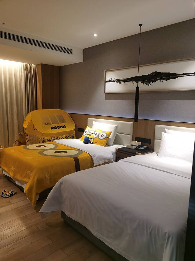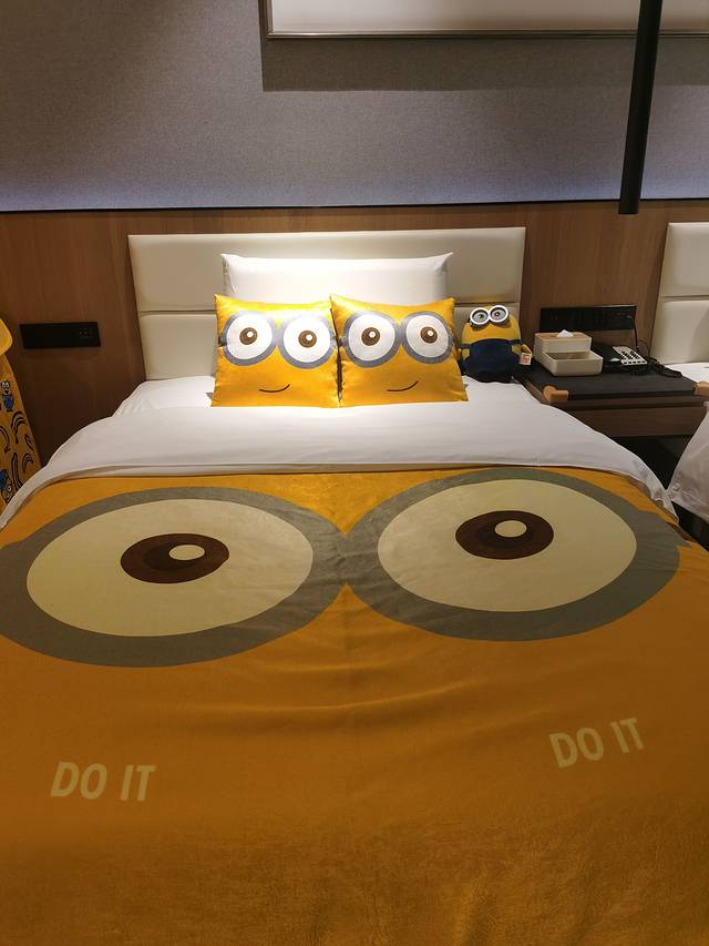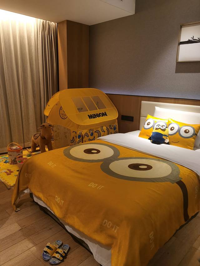 订了小黄人主题一间双人房1343元+普通双人房一间840元,可以连着附近,主题房其实就是在普通房多了一些帐篷摆设和主题东西。