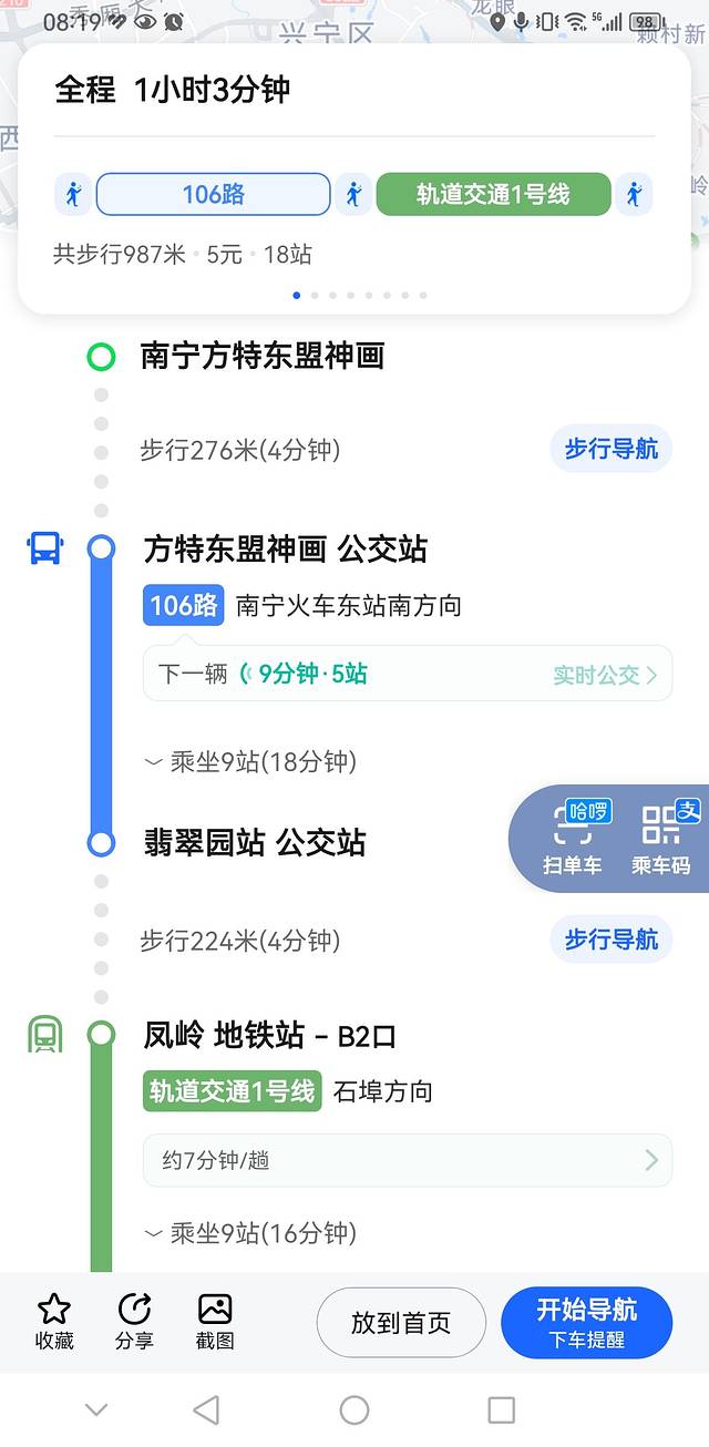 或坐广州南18:11 D228到南宁东21:01,历时2:50二等座208元一人