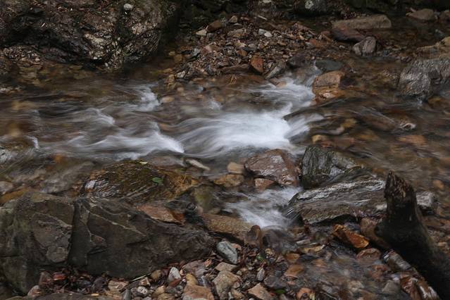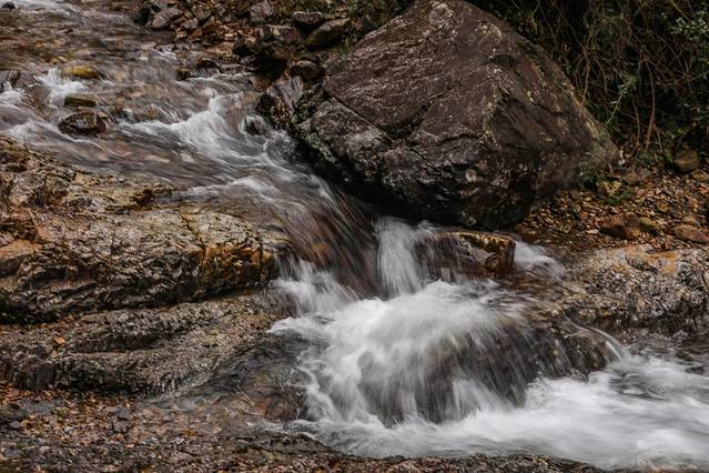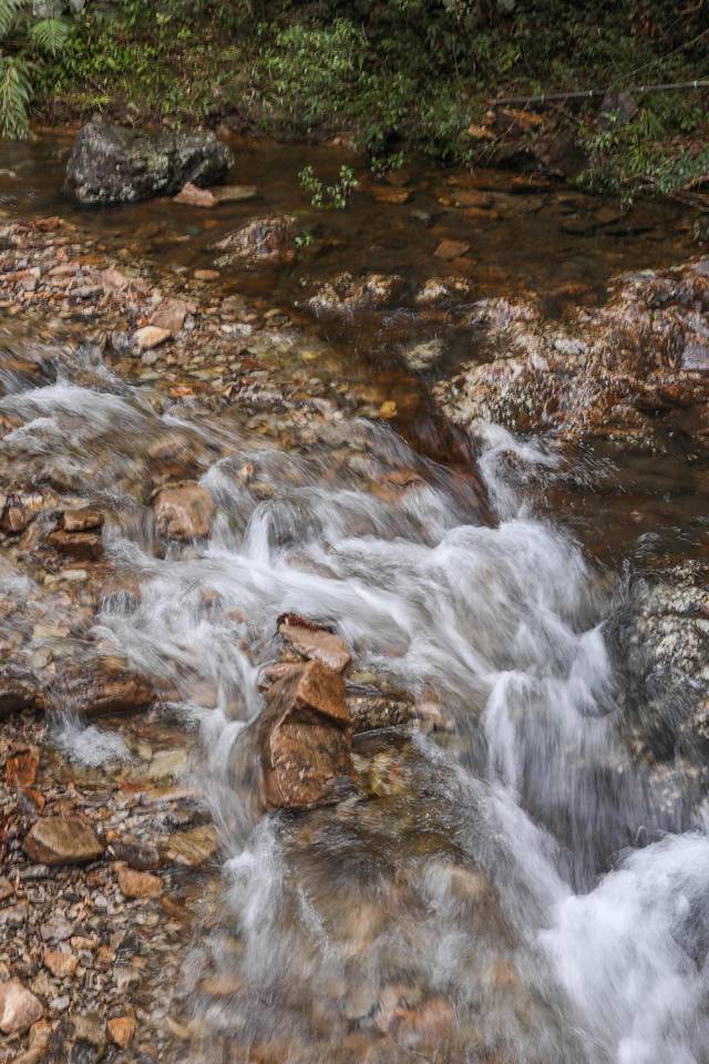 这里的河水非常清澈,透过河水能看到河道的石头,河道偶有起伏,河水在起伏处跳跃,在河水起伏处激流而下,更给这里增添了一种鲜活灵动的味道。