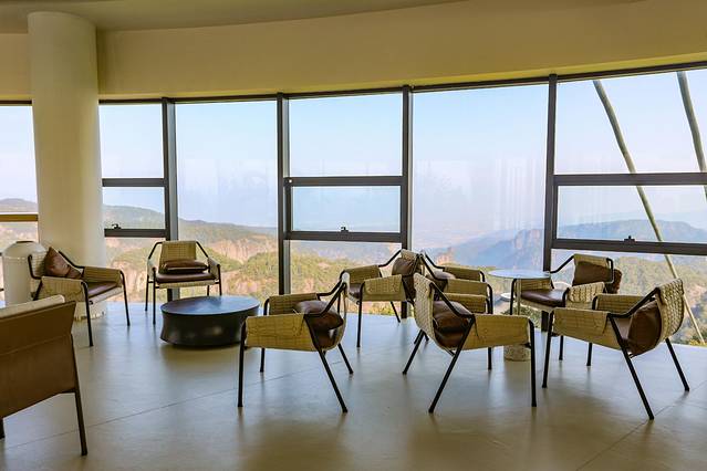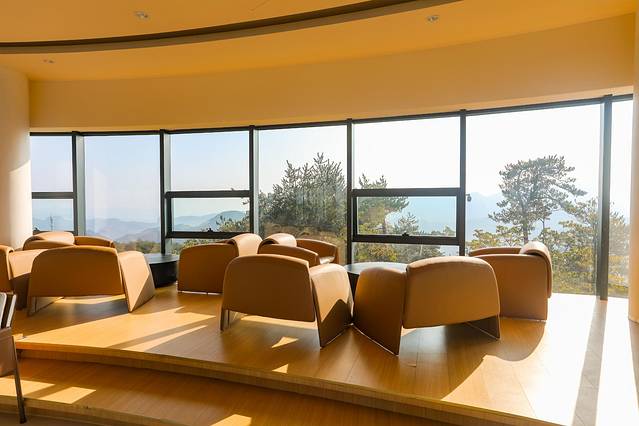 咖啡厅用了全落地玻璃的设计,点一杯香气四溢的咖啡,在这里看山峦起伏的美景,也是一种有趣的享受。