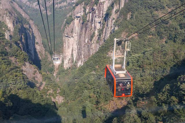索道一路风景如画,能够看到两边的悬崖峭壁,看着高度不断攀升,视野中也越来越开阔。神 仙居 的奇与峻,就如一副水墨画卷,在眼前缓缓展开。