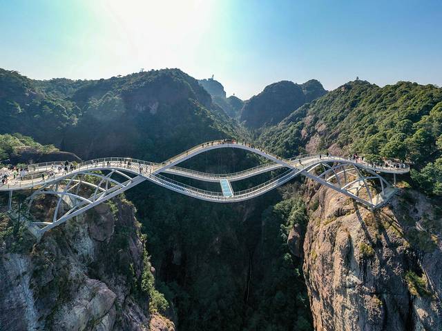 如意桥上下两层的白色桥身在山间有如绸缎,也如蛟龙,非常灵动别致。