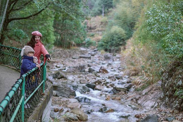 神 仙居 不仅有雄伟壮美的奇峰异石,还有清澈秀雅的泉水。第二天的时间,选择了位于山脚的神 仙居 淡竹休闲谷,和小肉包一起感受一份宁静。