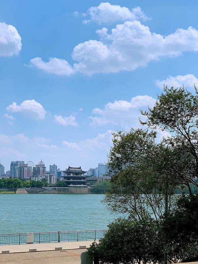走在橘 子洲 上可观赏两岸风景,相望的杜甫江阁就是观赏橘洲烟花最佳位置。