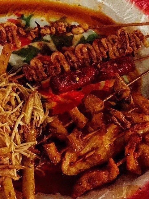 长沙 烧烤里,不能不点的就是牛油了吧,小串上是一串三四粒,一口一个,又香又脆,比较考验功夫;