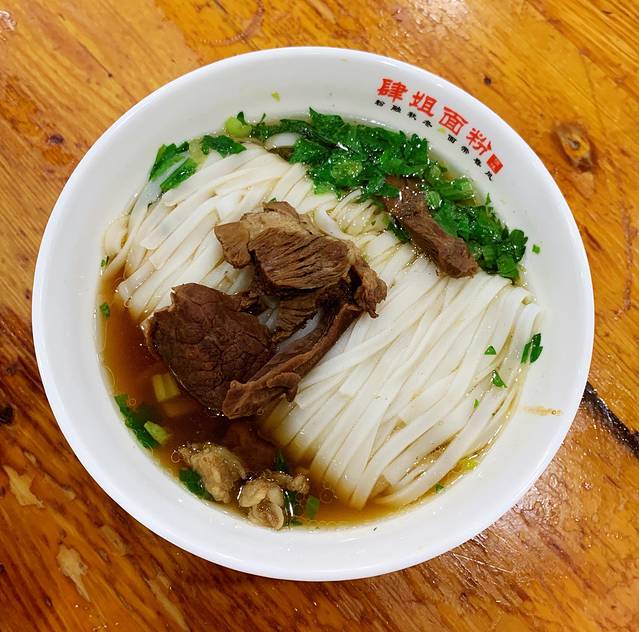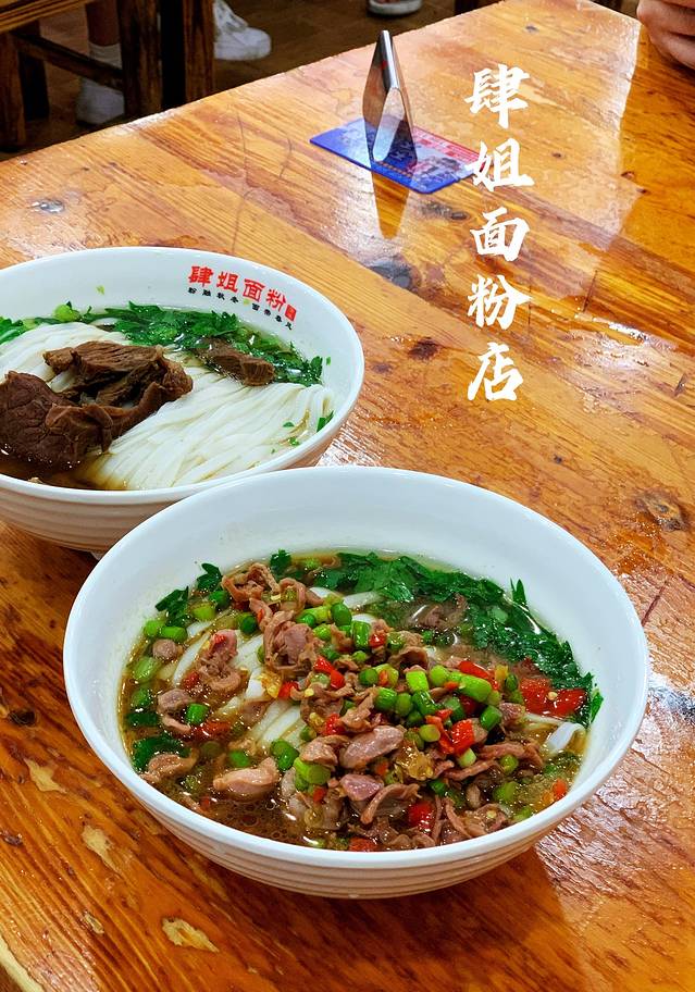 牛肉粉清淡一些。牛肉大块有嚼劲,卤制过,汤底加了猪油