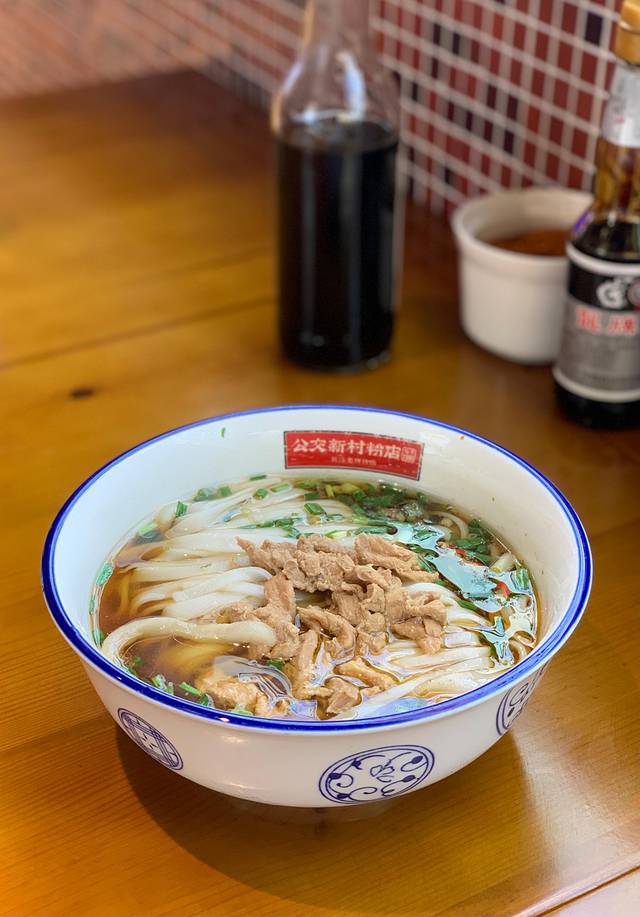 公交新村粉店,是因为临近公交新村得名。原来的小铺子不大,很多食客都是在路边嗦完粉。