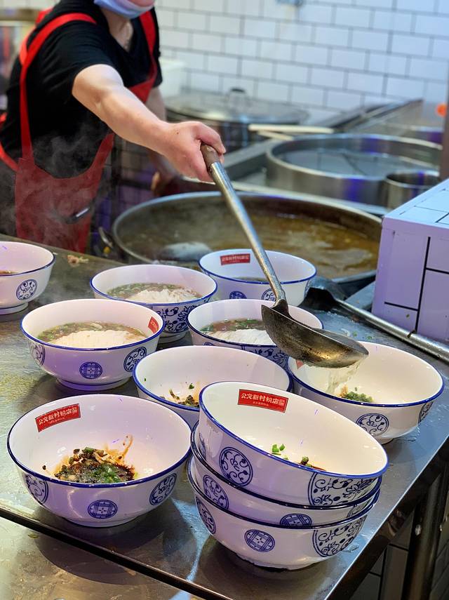 基本调味都已经在碗里打底,小票递过去之后,由大姐烫粉、舀一勺汤,按照点单的码子码上。