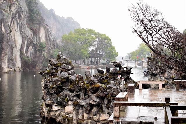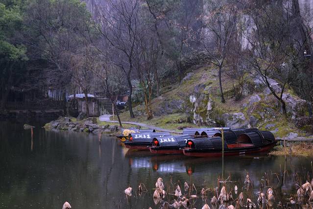 中午饭还没吃,景点又没法游玩,很是郁闷。在街边买了点炸豆腐和萝卜饼当中饭。跟老婆商量下果断换个景点,绍兴东湖,这里人不多。我去过武汉东湖,绍兴东湖还真不知道,一查还是浙江三大名湖之一。