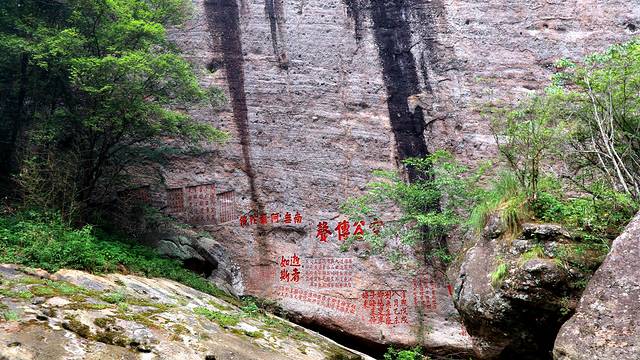 玉女峰下的浴香潭,相传是玉女沐浴的地方;潭中的“印石”是大王送给玉女的定情信物。玉女峰东侧有圆石如镜,光洁照人,是玉女梳妆台,壁间“镜台”二字,是武夷山最大的摩崖石刻。
