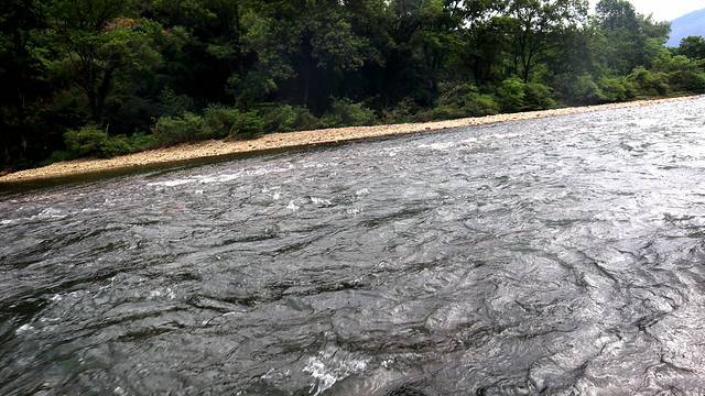 溪水清澈。据说这里还是农夫山泉的取水处,记得艄公开玩笑说,从他们这里流出去是农夫山泉,流到我们那就是可口可乐了。