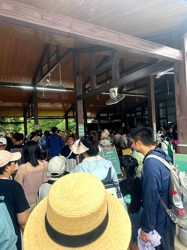 4. 我们定的是7:50的竹筏漂流。从到摆渡车开始就一直都要排队,直到上了竹筏大概用了1个小时。大概流程是坐摆渡车-入口排队验票-大厅有工作人员安排8人一组这时候票就会集中在一个人手上-走到码头上船。虽然有时间的限制,但是感觉工作人员没有人检查实际的时间。我们验票的时候由于排队事实上就是晚点了。竹筏上的确是要20元的讲解。个人认为虽然讲解大部分时间都有点冷笑话,但是起码会提醒在重要的地方拍照或者帮我们拍照,船棺的地方没有他们提醒我们也确实注意不到。个人建议这点钱还是花了。我们是7月份去的。竹筏结束的时间是9点左右。这时候太阳出来了,后半程就感觉有点热和晒了。所以这方面关注的人建议还是早点坐竹筏。