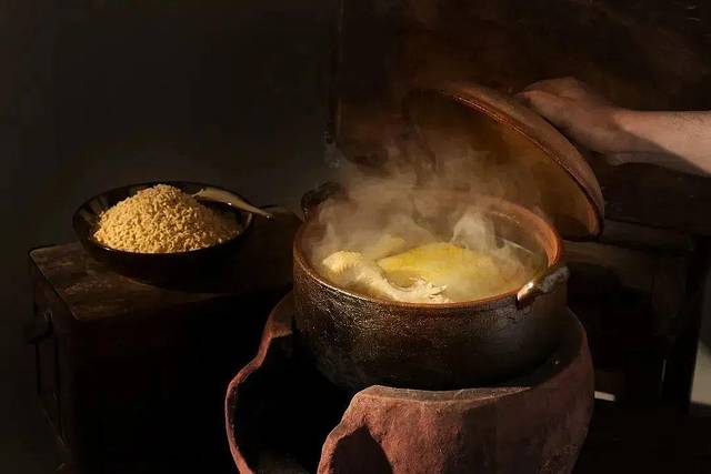 脆香的炒米搭配一碗热烫浓郁的老鸡汤