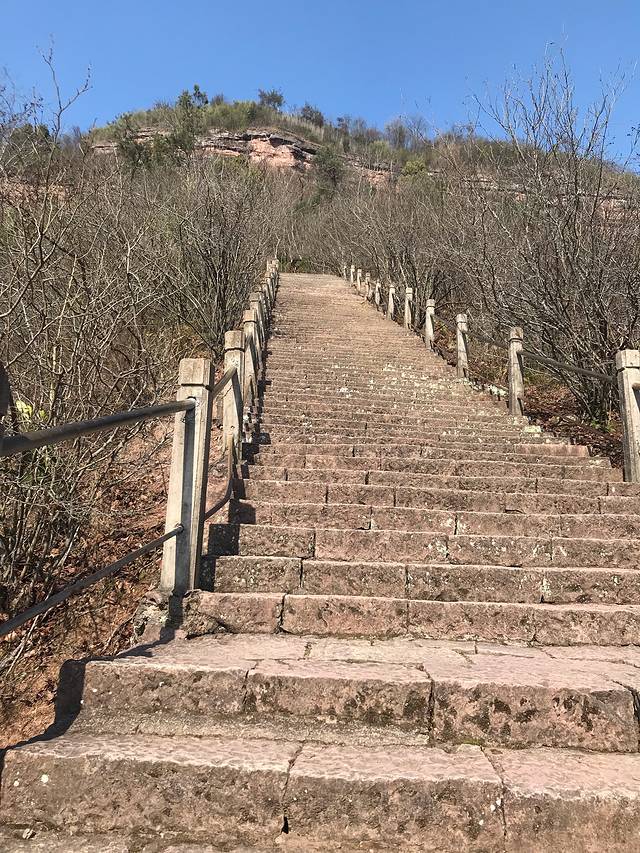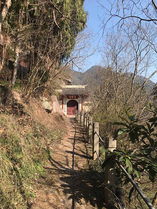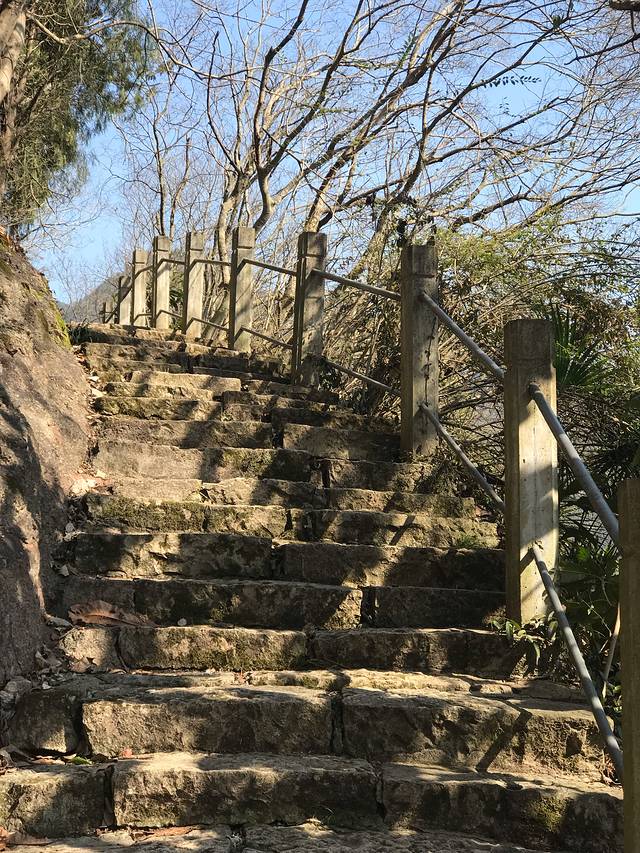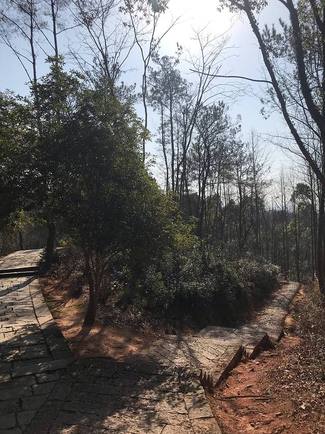 沿着台阶拾级而上,两边栽满了紫荆树,如果是花季,满山遍野都是紫色的。