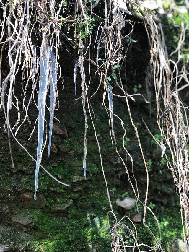山上的气温有点低,都有冰。