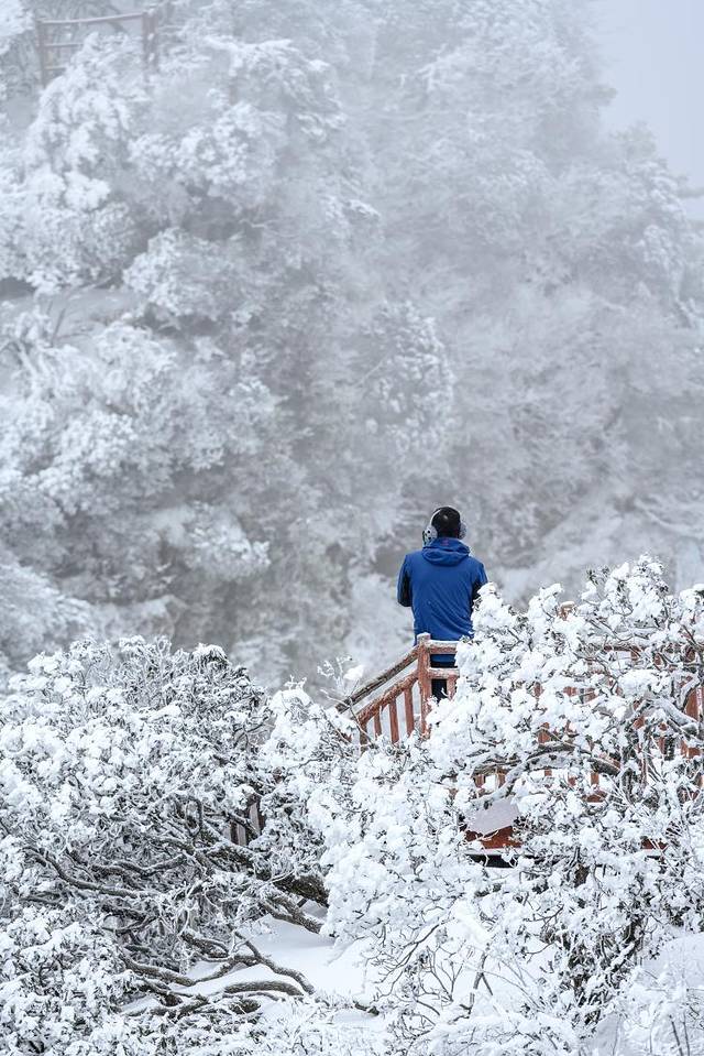 来来往往的人游走在山林间,又为这宁静的冰雪世界增添了一抹抹生动的色彩。