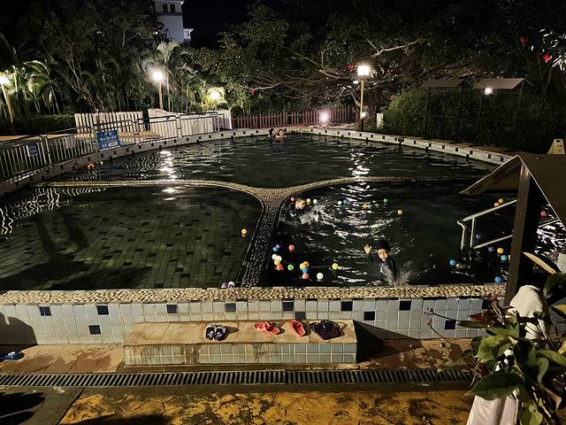 看完碉楼,要找地方住了,就去了新会泡温泉,住在景区里面的酒店,喜乐酒店,439元包含住宿和两张成人温泉票和鱼疗,还有免费自助早餐,住酒店免停车费。温泉谷内小孩1.2米以下不用买票,里面真的挺大的,据说有六十多个池,第一次泡温泉感觉挺好玩。
