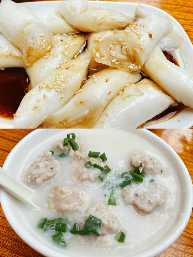 猪肠粉和肉丸粥是招牌,肉丸很q弹,粥很惊艳,很绵绸,入口即化却不像水。