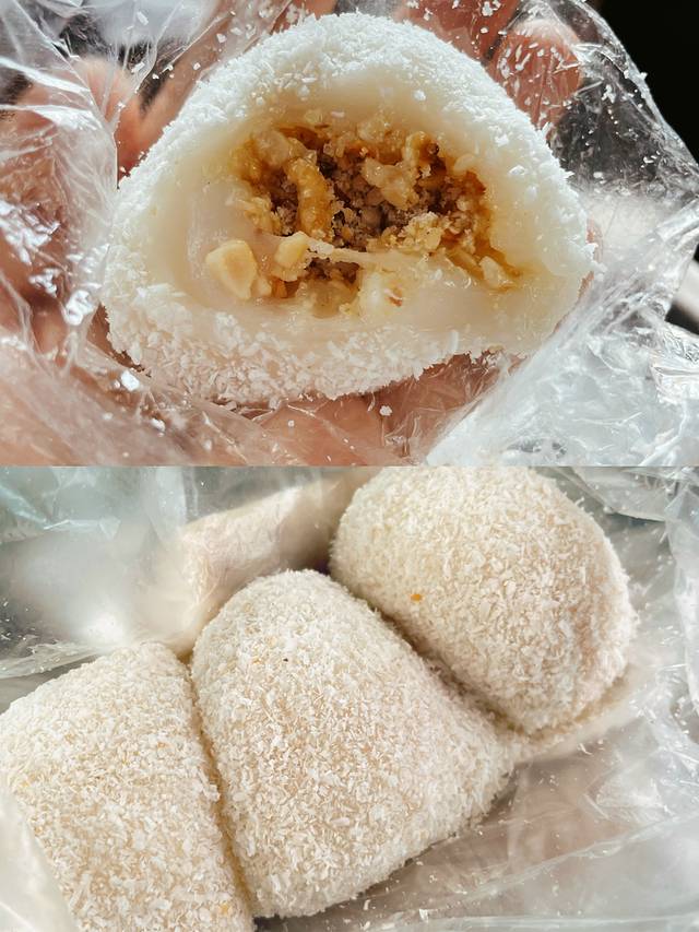 糯米糍,还是温热的,内陷是传统的白糖椰蓉花生碎,不会很甜