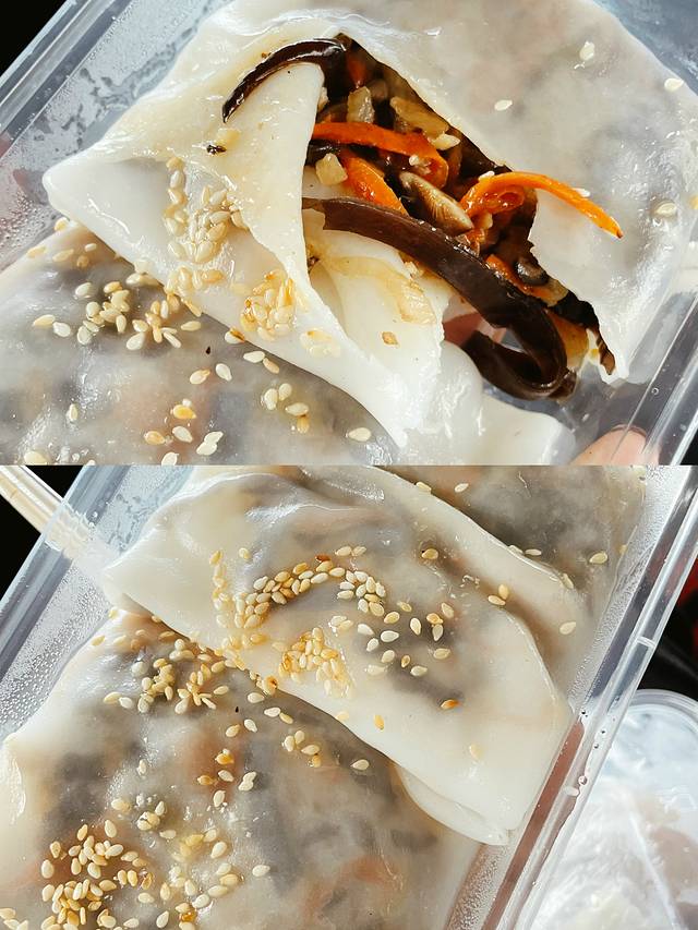 经常会在某音刷到这个肠粉,所以心心念念了很久,终于吃上了,赞!到的时候阿姨都打包好准备收摊了,还好她看到我在车里张望她的摊位,想着我可能要吃肠粉,就等了一会。停好车之后我买了剩下的,阿姨还便宜了给我,开心!满满一袋8元,肠粉真的好吃,上面撒了花生碎,很香!