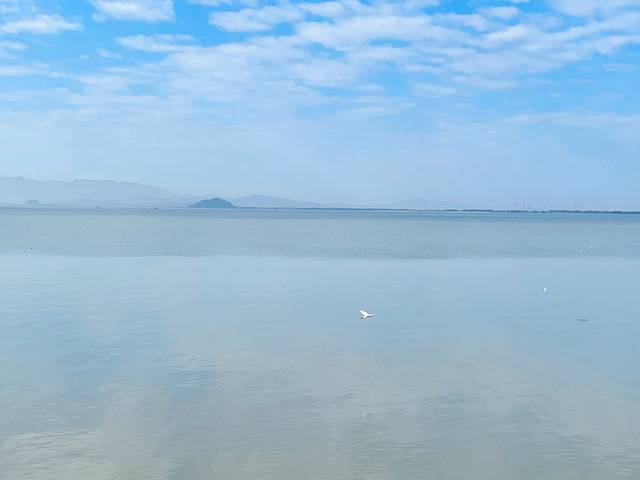 新会的这片海真的好美啊!照片拍不出来,又上传不了视频,好可惜,不是碧海蓝天,它像一幅水墨画,无边无际,海天之间是一丛丛山峰绵延不断,海面上有很多鹤,大白鹅,还有很多海鸥在飞,意境超美的,瞬间治愈。