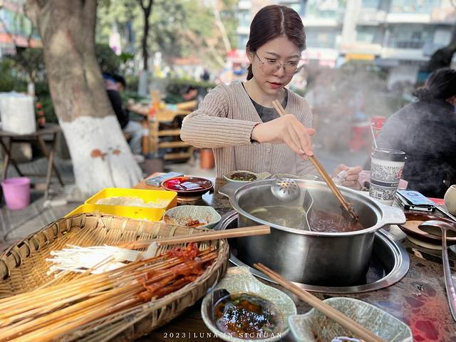 离开锦里来到宽窄巷子已经下午1点多,肚子熬不住了,在附近的奎星楼街吃了串串。一开始我以为一串应该是有几块肉的,原来只有一小块,都不够塞牙缝,难怪看到隔壁桌的桶里积攒了这么多签。