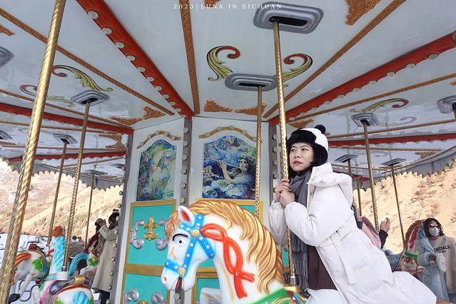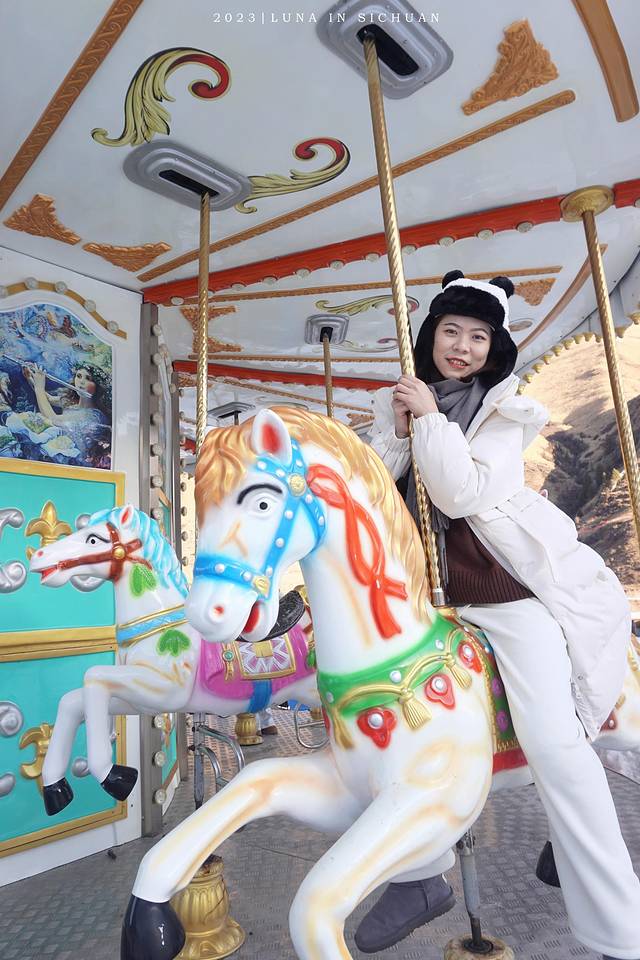 这个旋转木马当然是不会动的,就是提供给游客拍照凹造型用,不然四周都是山拍照姿势就那么几个,不增加点辅助可能就全程剪刀手了 。
