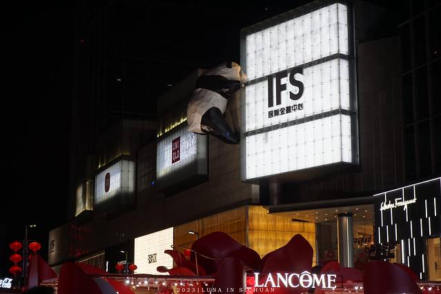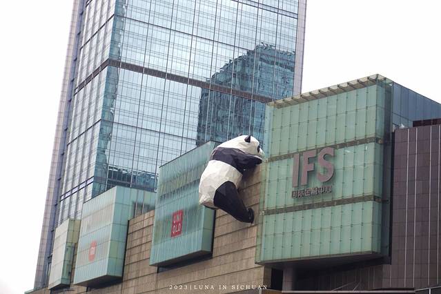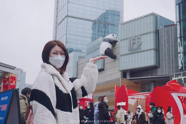 IFS国际金融中心上趴着的大熊猫最受游客欢迎,据说春节期间上去拍照打卡还需要排长队,然后你需要在众目睽睽之下完成各种post的拍照流程,社恐想想就害怕,所以我们没有去凑这个热闹,但也不能免俗,远远的托着熊猫屁屁来张亲密的合影吧。