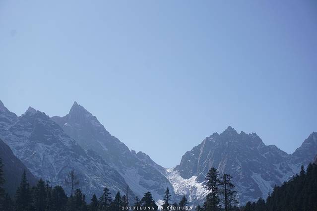 一下车就能看到一座淡蓝色的冰川(没有图,因为我没去拍),在阳光的照耀下发着微光,从这里开始已经挤满了拍照打卡的游客,本想着回来的路上再去看看,但下午整个毕棚沟都处于背光的状态,非常刺眼。
