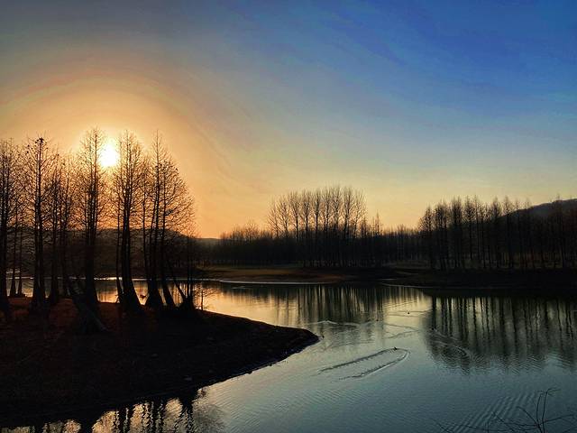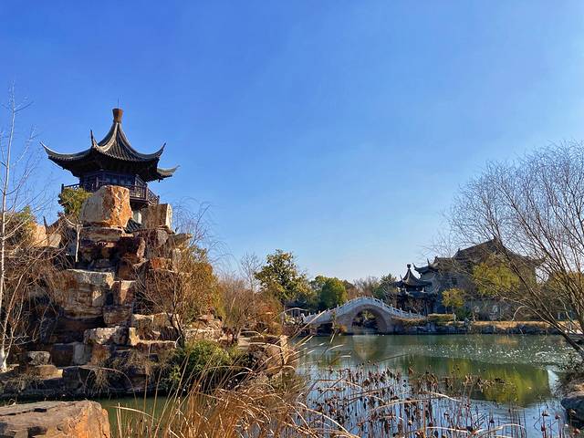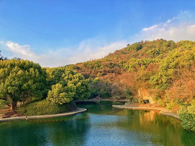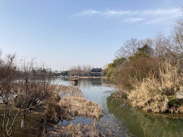 去往淮安半路上的一个野景点,紧挨着铁山寺国家森林公园,十分小众,如果是去铁山寺顺路可以看看,不建议的单独前往。到达天泉湖旅游度假区后是一个停车场,湖边有宽阔的开放大草坪,再往前紧挨着跨河的大桥边上,有一个栈道的入口,下去后是个小型的观景台,这里还可以看到水中杉树的景象,来的时节不好,树和草都是秃的。最佳的时间是深秋,水杉红黄相间和湖面倒影相互成映画,是为绝景。