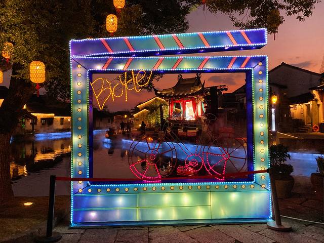 柯桥区的第一大镇,但实际占地并不是很大,但是商业化的程度比较高,距离柯岩景区很近,建议是安排在晚上来。整个镇子的灯光化效果非常好,可以算是绍兴晚上最漂亮的古镇了,整个镇子并不算太大,但是东西不少,基本都是仿古的,比如射箭场,戏台等,还有现代的彩虹喷泉灯光秀等。人流大多集中在中心地带小吃店铺集中的一条街上。