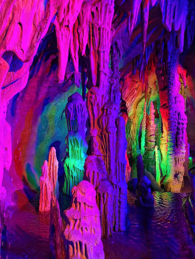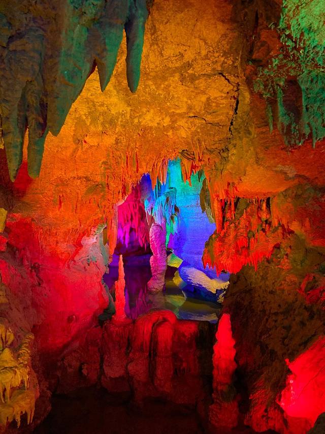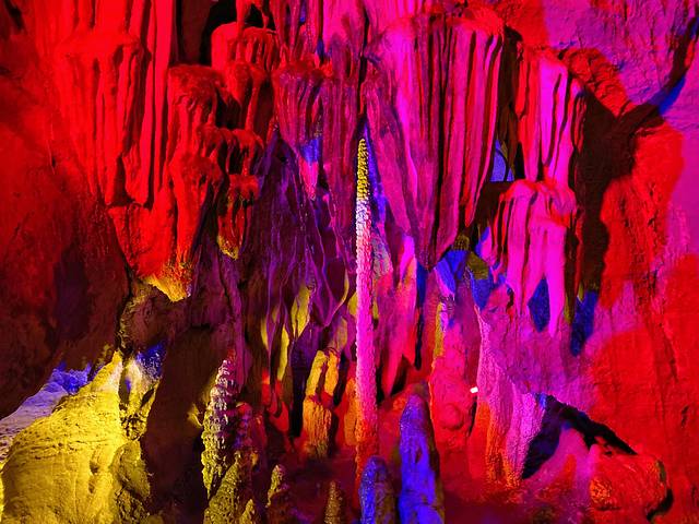 沂水县城边缘的一个景区,看着还比较热门,实际是个坑爹景区。如果不是附近或者玩漂流就不用来了,作为溶洞来说性价比太低。景区大门不是洞入口,有三种方式可以上山,走路不到3km大约30-40min没什么爬升,观光车或者小飞龙都是单独收费,出口出来就是停车场。溶洞内部比较长,但是没什么景色,钟乳石造型什么都比较差不太像,基本一共只有5处能看。中途是一段比较长的地下河,但是人工痕迹也比较明显,此处可以选择漂流或者沿着水边走,一路没有任何景。过了河之后的景色比较集中,也是最好看的一部分,最后的区域搞了个灯光投影,也是单独收费,还有洞藏酒卖。基本上门票除以3差不多是这个溶洞的价值,除了门票之外,里面任何一个项目都是单独收费的,整体连那些3A2A的洞都不如。