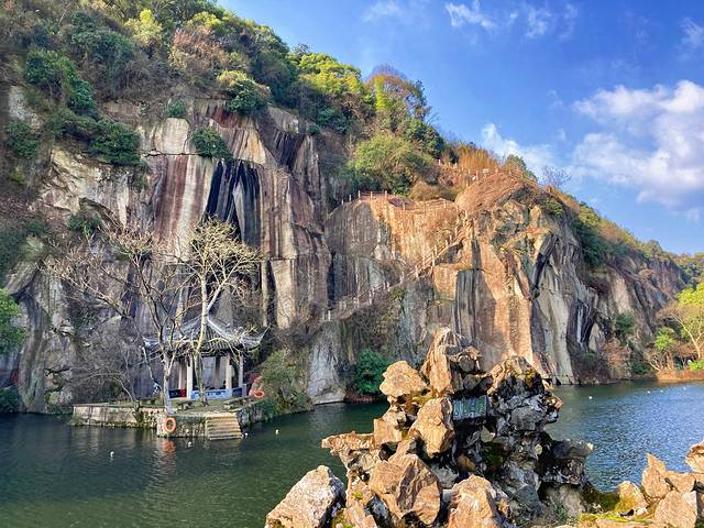 倪翁洞,下车走20min左右到达山下,有个洞可以往上爬,之后爬到山顶有一小湖,主要看洞内的摹刻,山顶看湖的景色不错。