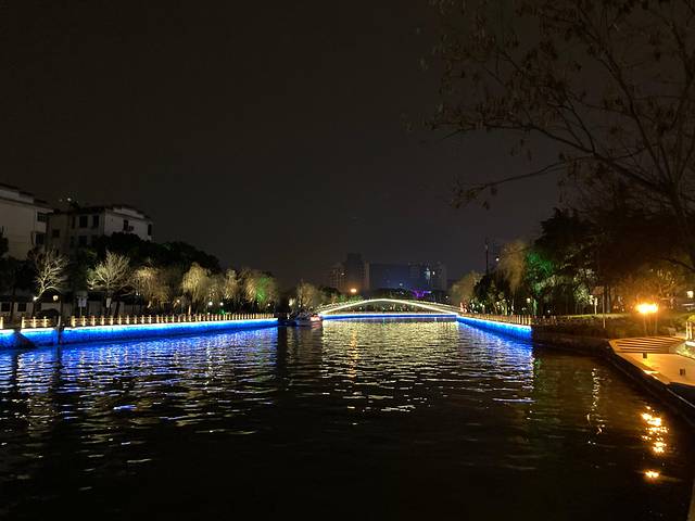 流经扬州市区内有很长的一段河道,基本整个河道的两边都修建成了公园步道,晚上河道两侧、游船、大桥上都有灯光十分漂亮。有的路段可以直接下到水边,沿路还刻了许多不同的壁画,时有不少市民游客在水边散步。