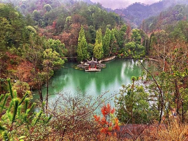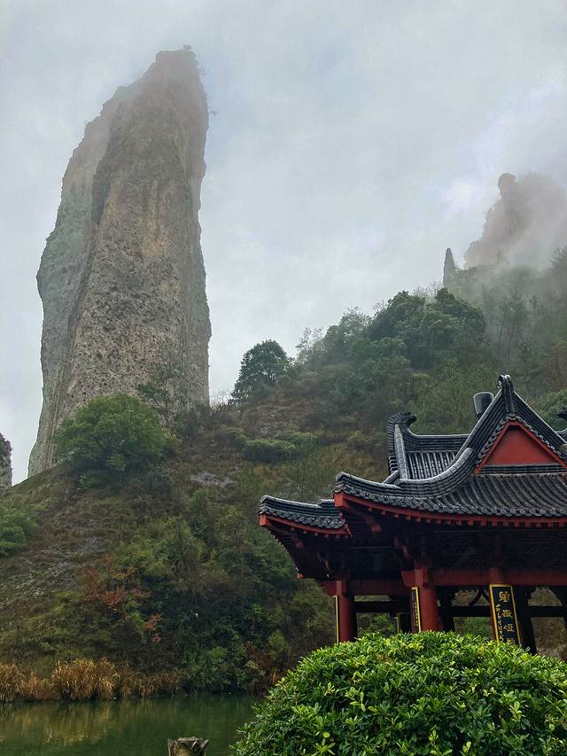 鼎湖峰,景色从这里开始,小脚下有一座皇帝祠宇,上山缆车在祠宇后面,山顶可观石柱,视角还可以,山下可从水仙洞一直走到朱潭山,路上的风景不错。