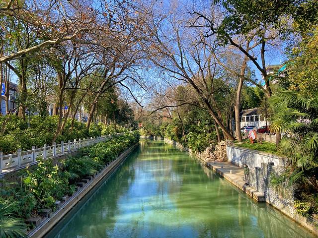 由于去瘦西湖限流进不去了,沿着河边走一走,较宽的河段两侧修建的比较现代化,而且较窄的河段则是偏古风的,时不时还有亭子可供休憩。