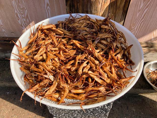 松阳县城附近挨着大木山茶园的一个农家乐,评分很高,吃到了特色菜红烧稀鱼,不过感觉和别的地方红烧的小鱼区别不大。有意思的是这个绿茶沙雷,为黑芝麻汤圆外面过了一层很厚的绿茶花生粉,有比较重的茶味,挺好吃的。