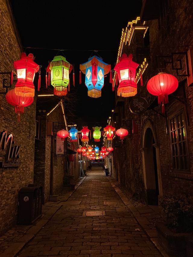 当地的一个历史文化街区,在另外两个比较有名的景点金山和北固山中间,这里晚上也开门,同样可以看看灯光。整个区域并不大,有一座不高的山包,15min就可以爬到顶,遗憾山顶的风景一般,遮挡也比较多,不过古寺夜晚的灯照比较好看,街区内的景色都差不多,但有不少布景装置,找一找转一转也可以出不少片,整体大概需要1个小时。另外网红锅盖面关门也是很晚的,大概是看游客流量和心情关门,感兴趣的可以尝尝。