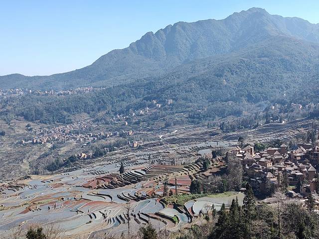 从近到远路线的话就先到箐口哈尼民俗村,年前的时候太冷清了,村里只有几个小孩村民,民俗文化氛围也没感受到,建筑和场所非常萧条,看梯田的话就不用在这看了,村里面的观景台好远又高,不必在此浪费体力,村口那个栈道看就是最美的了。