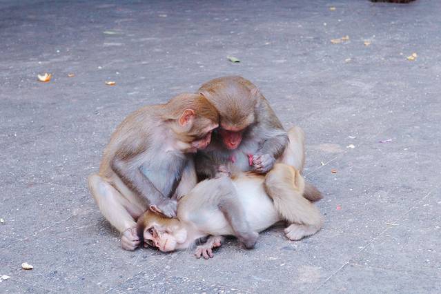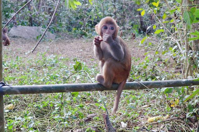买了上猴岛的门票和缆车票,排队坐缆车的人却太多。和工作人员了解一番才知道,这个票也是可以坐船的,公交船这样的私人非营运船只,是被禁止的。所以我们花了一分钟,从新村码头乘船,到了南湾猴岛。野生猕猴,大概因为每天吃得很饱,没有泸山的猕猴那么疯狂,没有抢食物的,也没有抢包的,甚至对游客投喂的食物置之不理。环境造就人,环境也造就一只猴子。海岛生活能让旅客慢下来,好好体会生活,也让这些猴子慢了下来,优哉游哉。