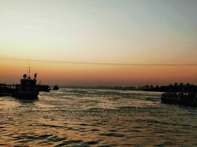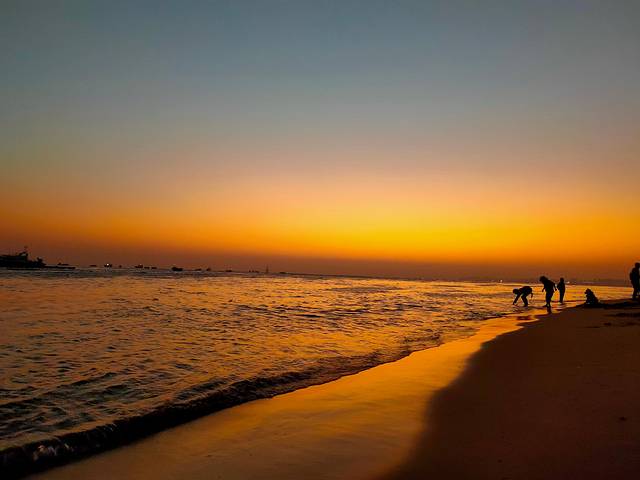 为了节约时间,我们回码头仍然选择坐船。刚刚好,遇到了晚霞。海浪,沙滩,游客,都披上一层橙色的微光。霞光美化了沙滩,时光温暖了你我。旅途就是这样,有失有得,有谁能保证自己按照计划到达的时间,就是完全正确?