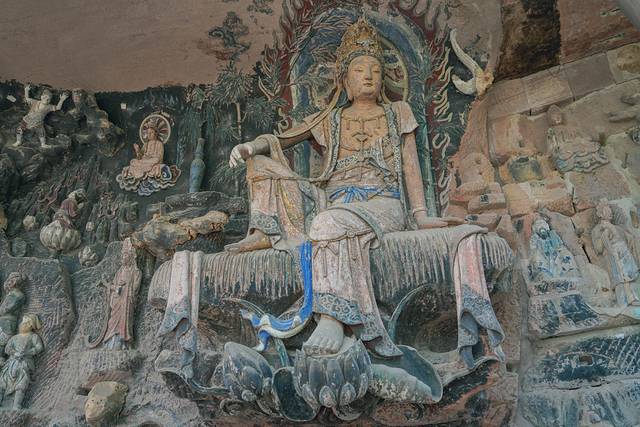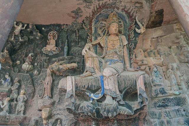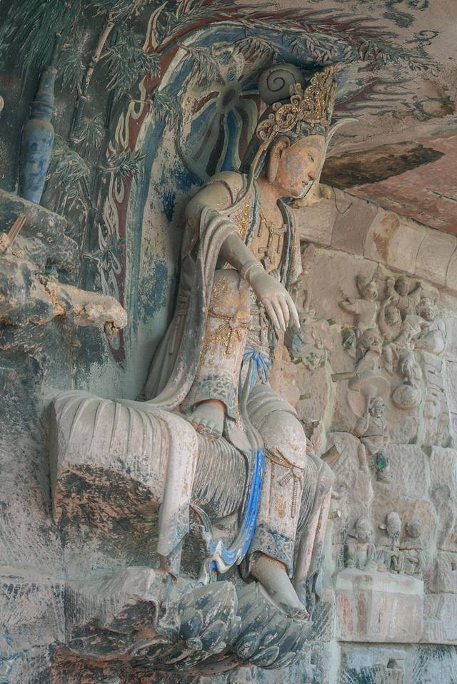 毗卢洞最出名的就是这一尊紫竹观音造像,这一窟雕于北宋,可以说是达到了宋代石窟造像的巅峰。