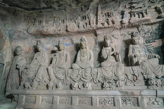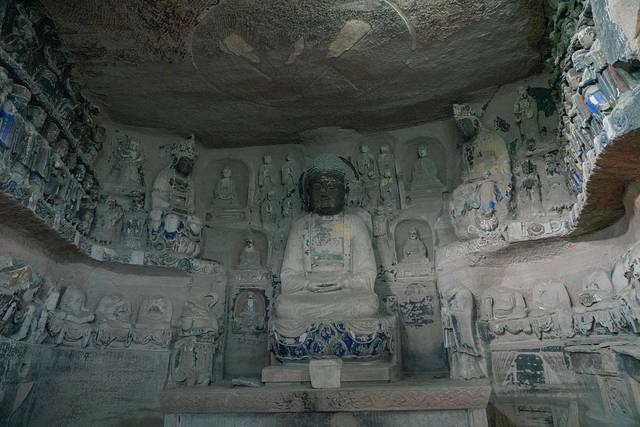 顶部刻有佛教六字真言的第一个字。华严洞也是全县造像窟中最大的洞窟,也是两宋时期的中国造像艺术典范。